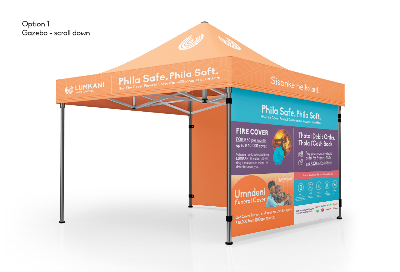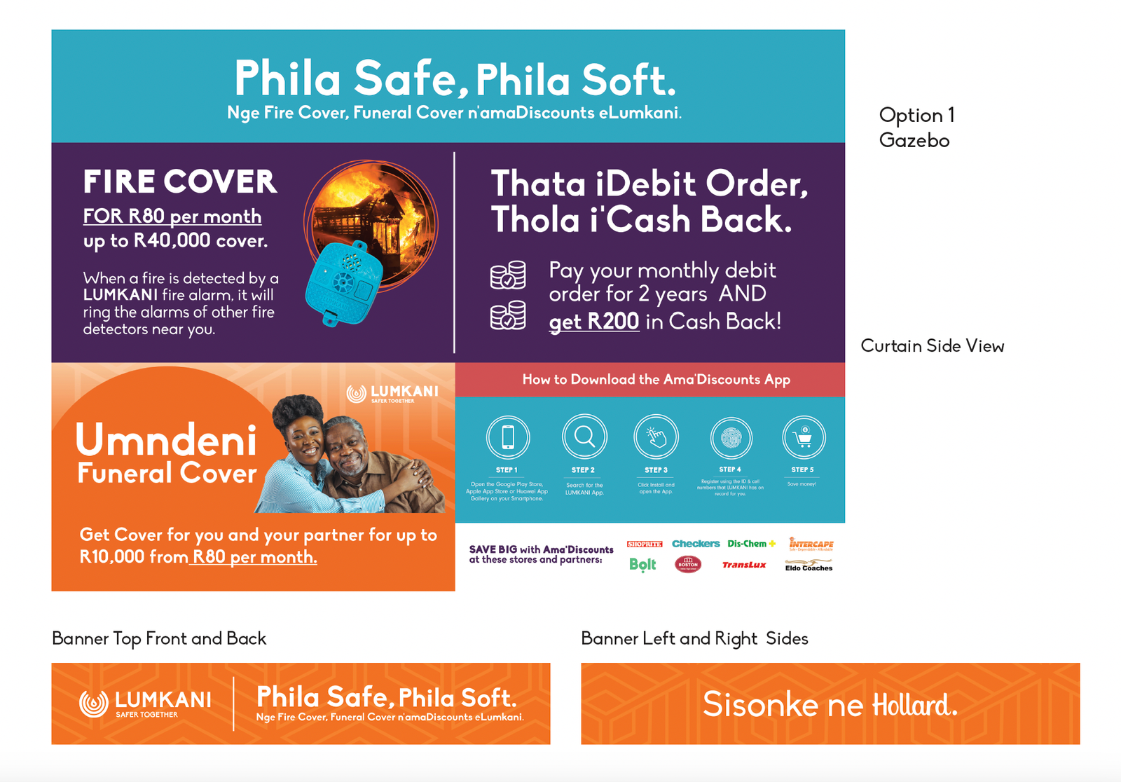 Develop informative and attractive brochures that detail the features and benefits of Lumkani’s funeral cover and AMA’discounts deals.